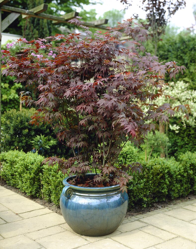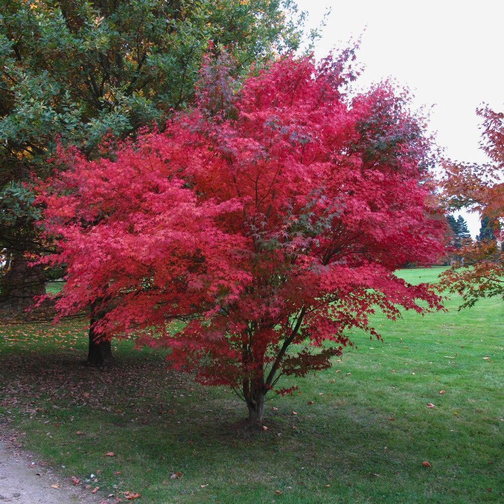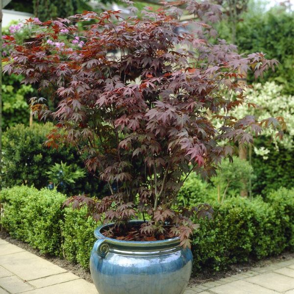 Klassisk japansk lønn selektert for stabil rødfarge og elegant, finfliket blad. Danner en liten, elegant krone – ideell i mindre hager.