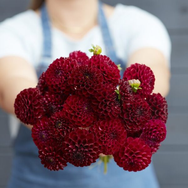 Dahlia 'Natal'Dramatisk dahlia i dyp rødfarge med fløyelsaktig glød som gir et eksklusivt preg i hagen. Store blomster og kraftige stilker gjør den ideell til snitt. En robust sort som blomstrer lenge og trives i sol og næringsrik jord.