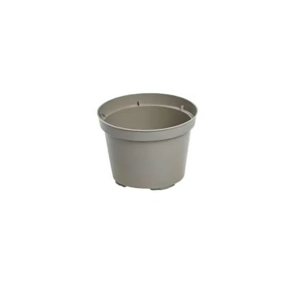 Sprøytestøpt potte i grå resirkulert plast. Perfekt såpotte på 9 cm i diameter.