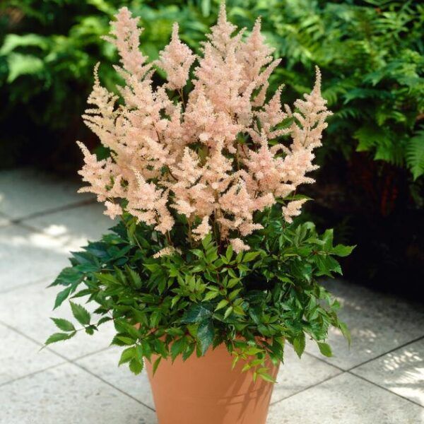 Astilbe er en skyggeelskende staude med fjærlette blomsterstander fra tidlig–midt sommer (noen sorter senere). Den trives i halvskygge til skygge og i jevn fuktig, humusrik men godt drenert jord. Perfekt ved damkanter, i skyggebed og i store krukker. Stabil, pålitelig og svært dekorativ også med bladverket. Full fylde kommer ofte fra år 2 når planten får stå i ro.