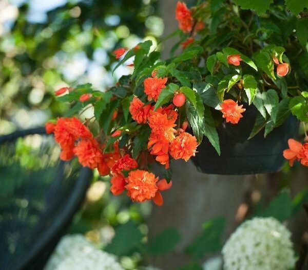 Begonia kan gjerne plantes i potter og krukker. Vi anbefaler litt større krukker, som gjør det enklere å holde jevn fuktighet. Merk at pottene da må tas inn på vinteren, dersom man ønsker at knollene skal overleve. Sørg for god drenering.