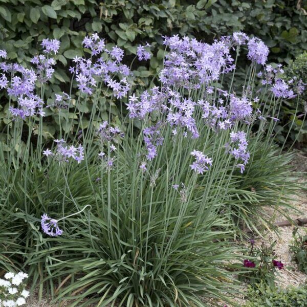 Kjent for sine delikate, lilla blomster og lette hvitløksduft, gir Tulbaghia violacea et subtropisk preg til hagen. Planten blomstrer rikelig gjennom sommeren og tåler variabelt klima, noe som gjør den både dekorativ og praktisk.