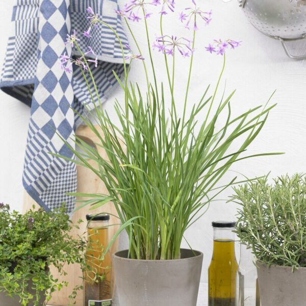 Levert i en 9 cm-potte, kan Tulbaghia violacea plantes om i større potte eller direkte i hagen. En avstand på ca. 30 cm mellom plantene gir optimal plass for vekst. Solrik plassering sikrer god blomstring og utvikling av bladverket, som også kan brukes som en mild krydderurt.