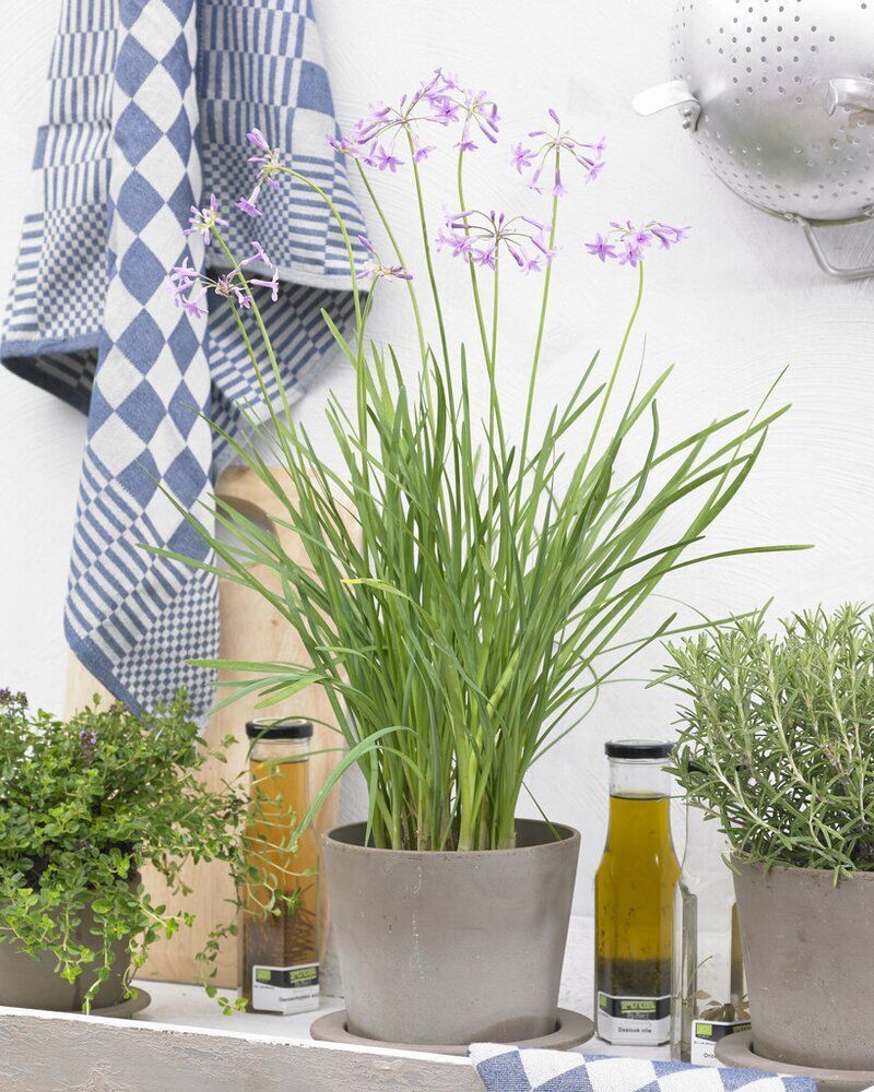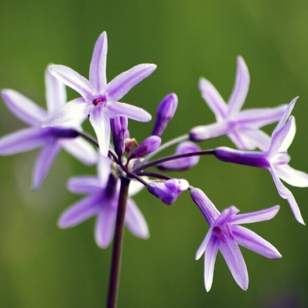 Tulbaghia violacea, også kjent som vill hvitløk eller society garlic, stammer fra Sør-Afrika og er kjent for sine lavendel-til-lilla blomster og mildt hvitløksduftende blader. Denne planten har blitt populær i europeiske hager for sitt slanke, elegante utseende og er ofte brukt i både prydhager og som kulinarisk plante.