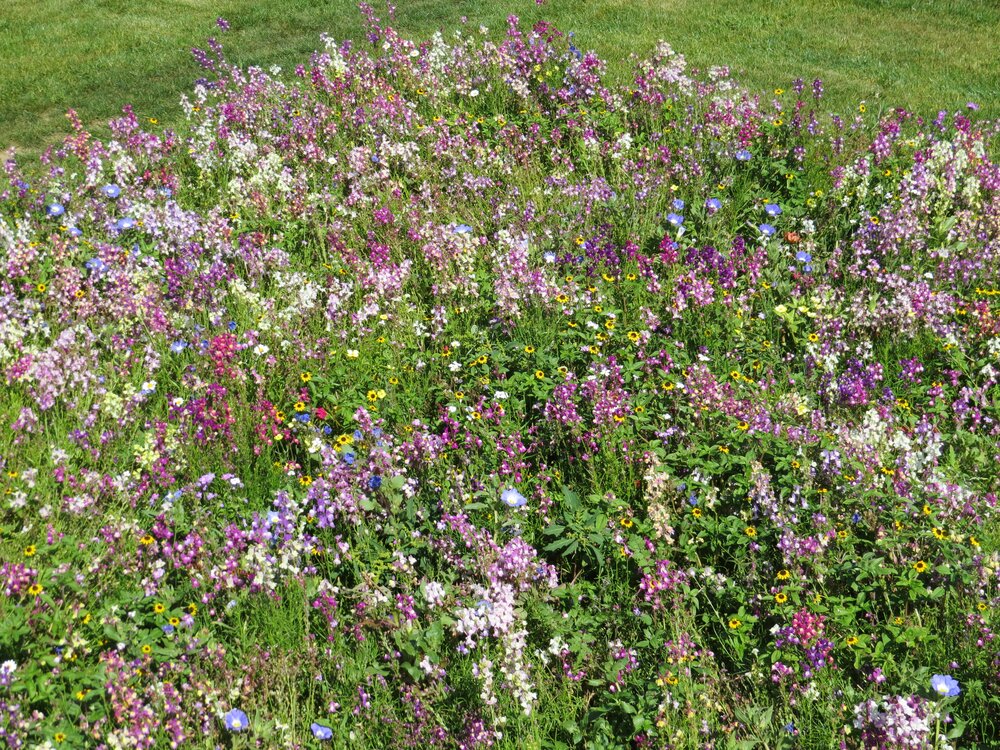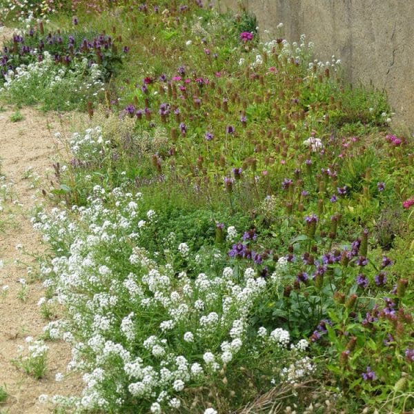 En frodig blanding av lavtvoksende blomster som dekker bakken med et teppe av farger. Perfekt for å skape et vakkert, vedlikeholdsfritt bunndekke i hagen.