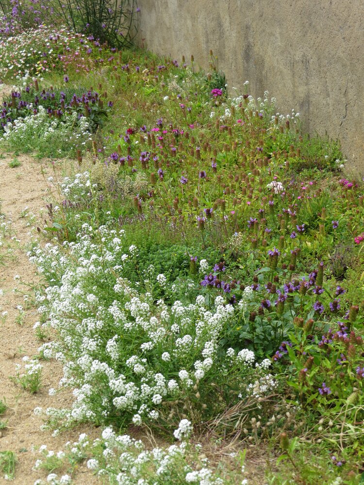 Blomster som nemophila menziesii (baby blue eyes) og saponaria ocymoides gir delikate farger og skaper en harmonisk kontrast mot de grønne bladene og de lyse blomstene i resten av blandingen. Gypsophila repens (krypende brudeslør) og thymus serpyllum (krypende timian) tilfører både skjønnhet og duft, mens prunella vulgaris (brunelle) bidrar med sin evne til å dekke store områder raskt.