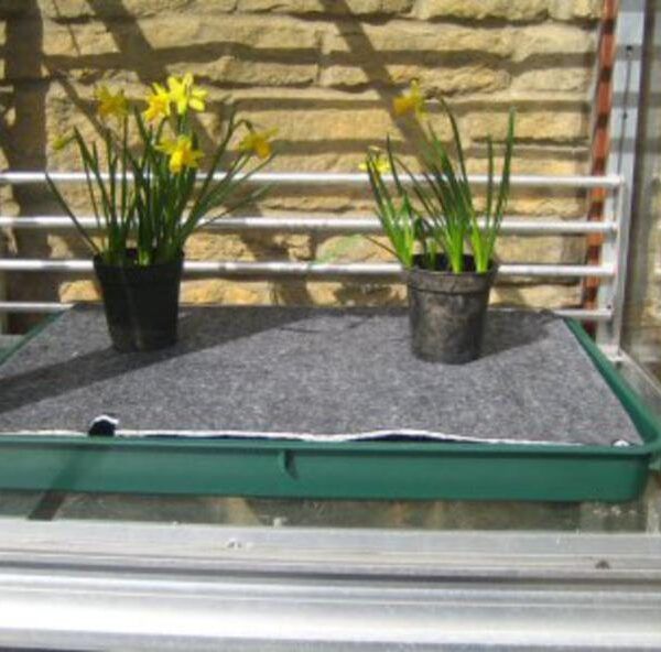 Plantene trekker vann fra selvvanningsmatten. Matten drar igjen opp vann og holder seg fuktig via vannreservoaret under. Dette gjør at plantene “drikker” vann når de trenger det og du unngår å både overvanning og uttørking av plantene.