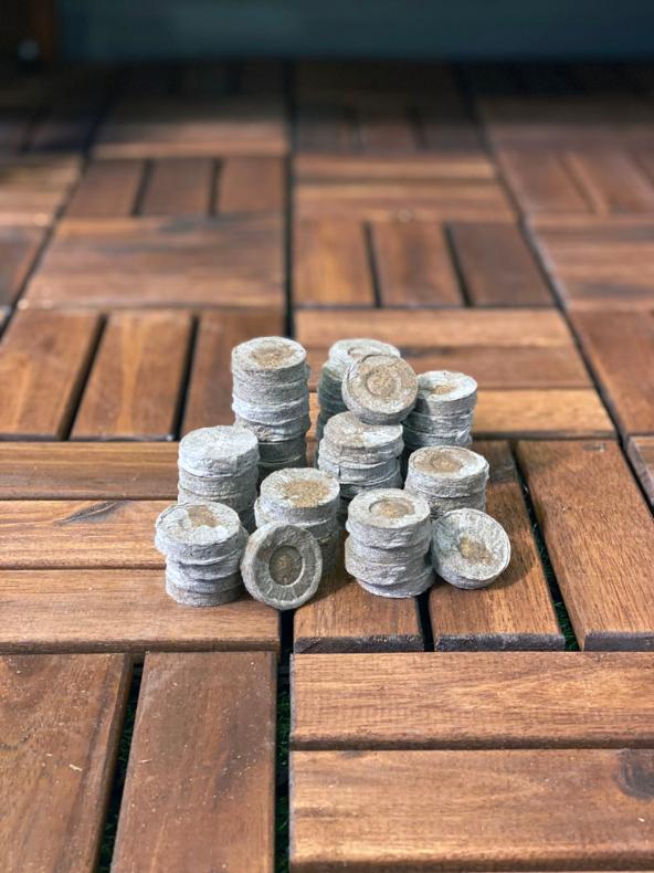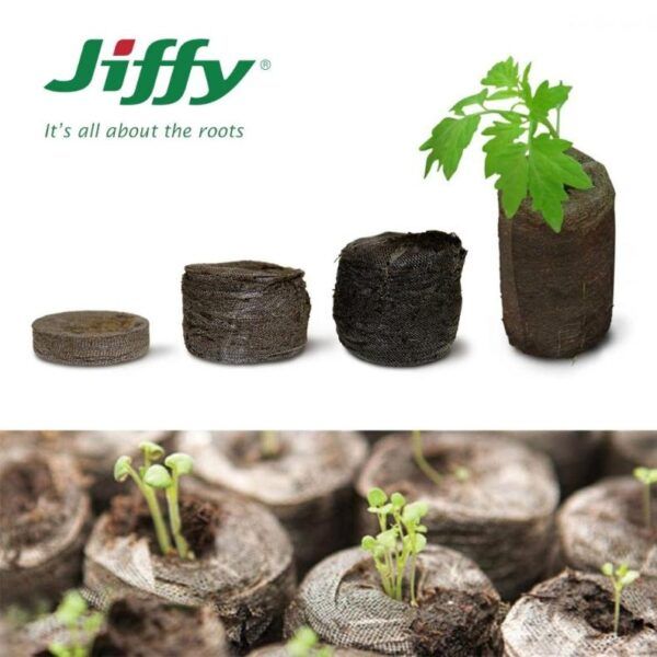 Briketter av presset torv (33 mm) omgitt av nett. Vannes opp med over- eller undervanning. Tilsatt næringsstoffer. pH ca 5,5. Brikettene har markerte hull til frø og stikling.