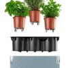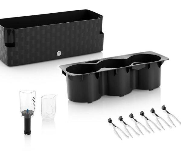 Med det praktiske selvvanningssystemet sørger den for at plantene dine får jevn tilførsel av vann, selv når du er borte. Den er delt inn i 3 separate stasjoner som har plass til vanlige plastpotter slik butikkurter kommer i. De medfølgende vekene stikkes så opp i jorda slik at planten trekker vann fra vannreservoaret.