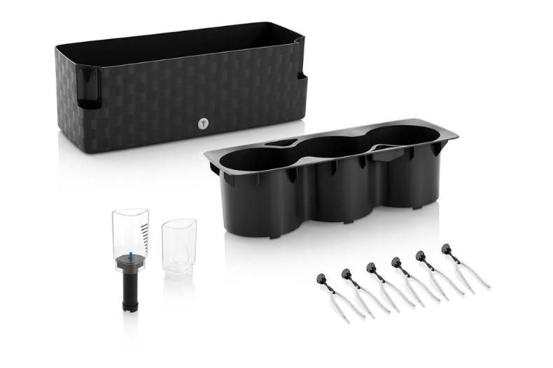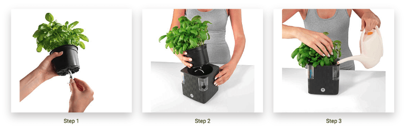 Med det praktiske selvvanningssystemet sørger den for at plantene dine får jevn tilførsel av vann, selv når du er borte. Den er delt inn i 3 separate stasjoner som har plass til vanlige plastpotter slik butikkurter kommer i. De medfølgende vekene stikkes så opp i jorda slik at planten trekker vann fra vannreservoaret.