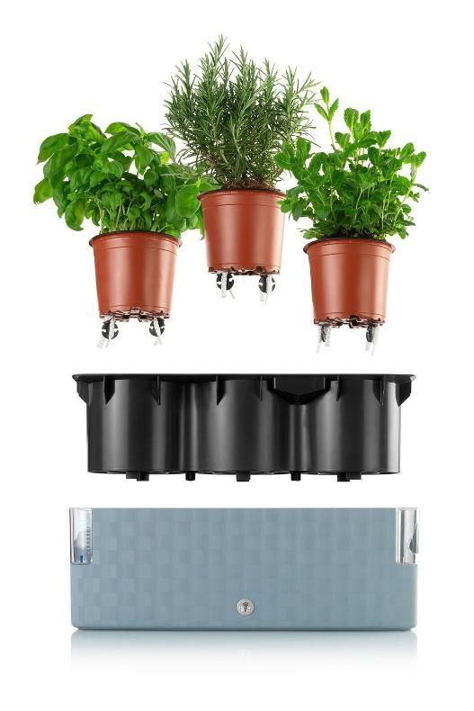 Gjør det enkelt og stilfullt med Cobble Trio urte- og blomsterpotte. Denne hvite, selvvannende potten er perfekt for å dyrke urter innendørs på kjøkkenbenken eller på balkongen. Selv om den i utgangspunktet er beregnet på å kunne ta vare på urtene du kjøper på butikken i lengre tid, kan den også benyttes som flott og elegant blomsterpotte for mindre planter.