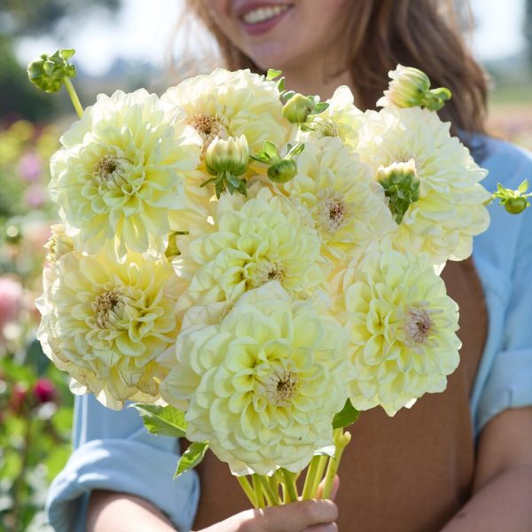 Dahlia 'Alloway Cottage'Elegant dahlia i kremgule og myke rosatoner som gir et klassisk og harmonisk uttrykk i hagen. Store, delikate blomster passer perfekt til snitt og står lenge i vase. En pålitelig sort som blomstrer fra sensommer til frost. Trives i sol og næringsrik jord.