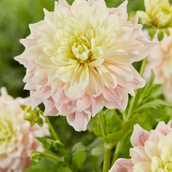 Gigantisk, kremhvit blomst med svakt rosatoner som folder seg ut som et kunstverk. En luksuriøs sort med store, myke kronblad og lange, rette stilker perfekte til snitt. Trives i sol og drenert jord, og gir blomster i toppkvalitet fra sensommer til frost.
