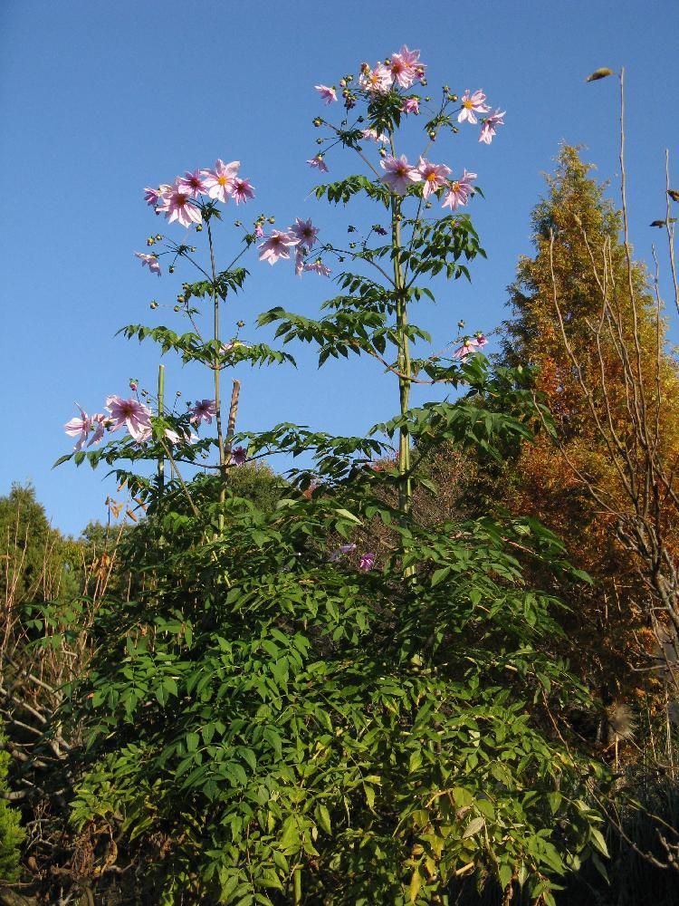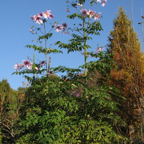 Dahlia 'Imperialis'Majestetisk tre-dahlia med høye stilker og store, lyserosa blomster som åpner seg sent på sesongen. Gir et tropisk preg i hagen og egner seg best i lune, solrike bed. Krever næringsrik jord, jevn fukt og støtte. Overvintres frostfritt.