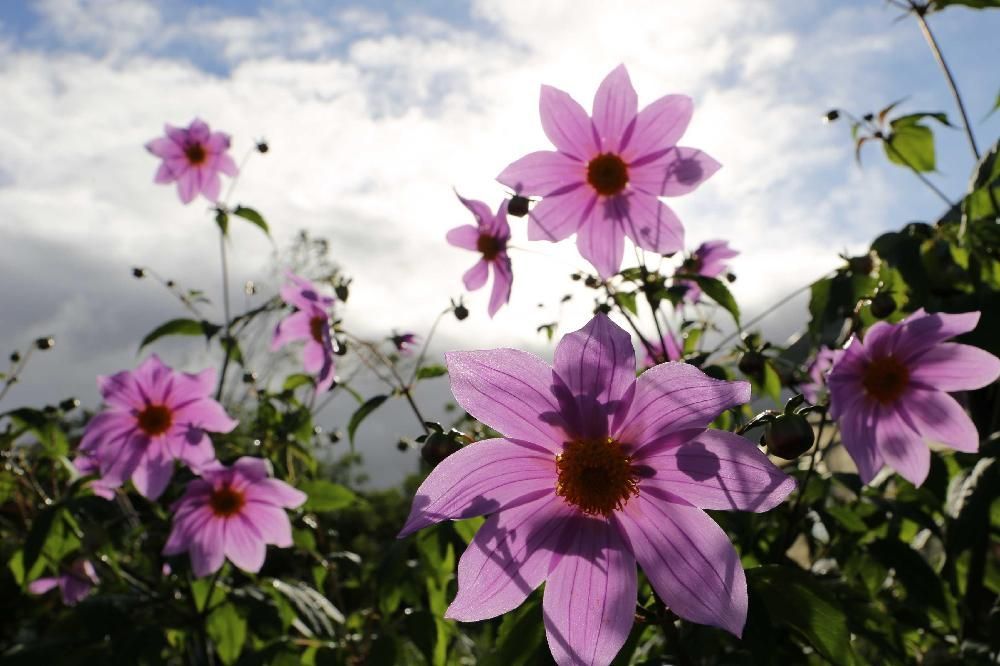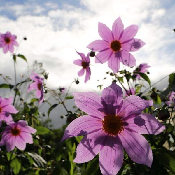 Dahlia er rikeligblomstrende sommerfavoritter som gir store mengder blomster fra midtsommer til første frost. De er ikke vinterherdige i bakken hos oss, men knollene kan tas opp og lagres for neste sesong. Med full sol, jevn fukt og moderat gjødsling vokser de raskt og finnes i mange farger og blomsterformer.