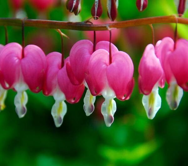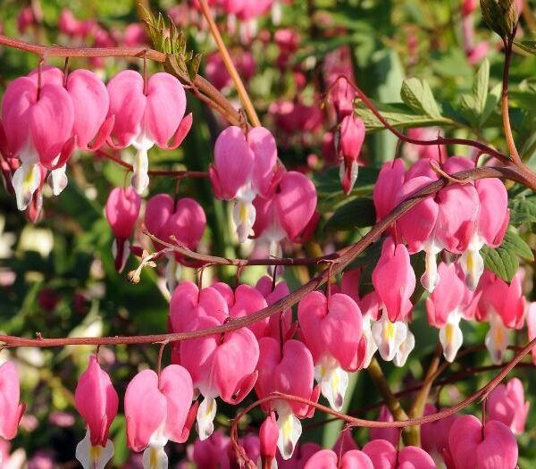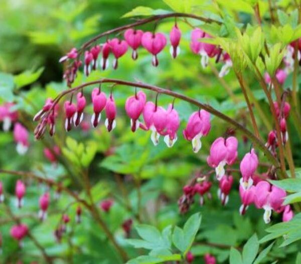 Klassisk staude med rosa hjerteformede blomster som henger i buede stilker. Trives i halvskygge og fuktig jord, og blomstrer fra sen vår til tidlig sommer. Gir hagen et romantisk preg med sin unike blomsterform. Egnet for både bed og krukker og tåler nordiske vintre godt.