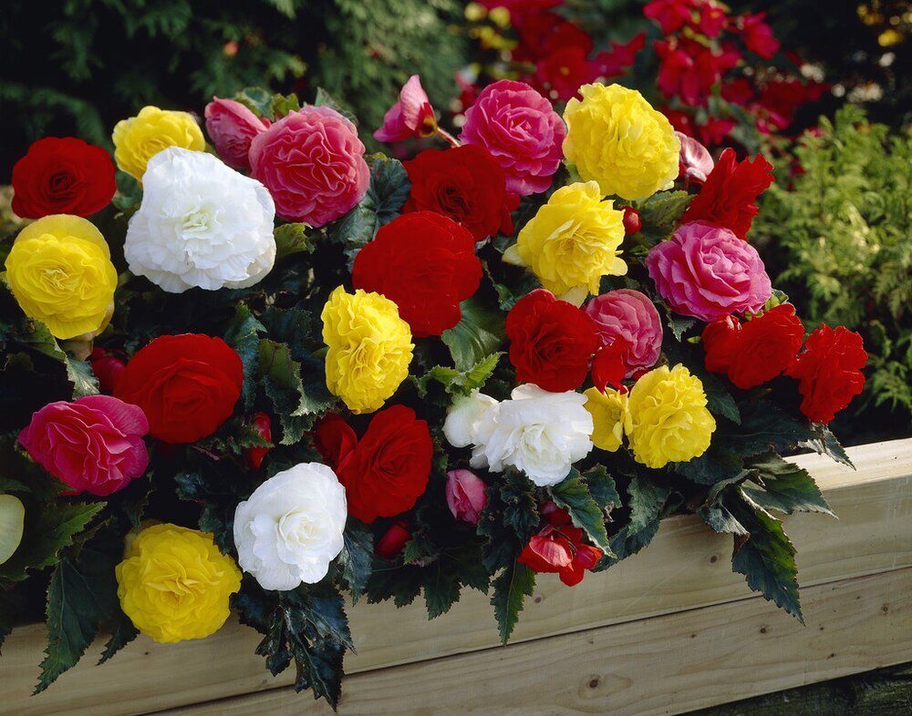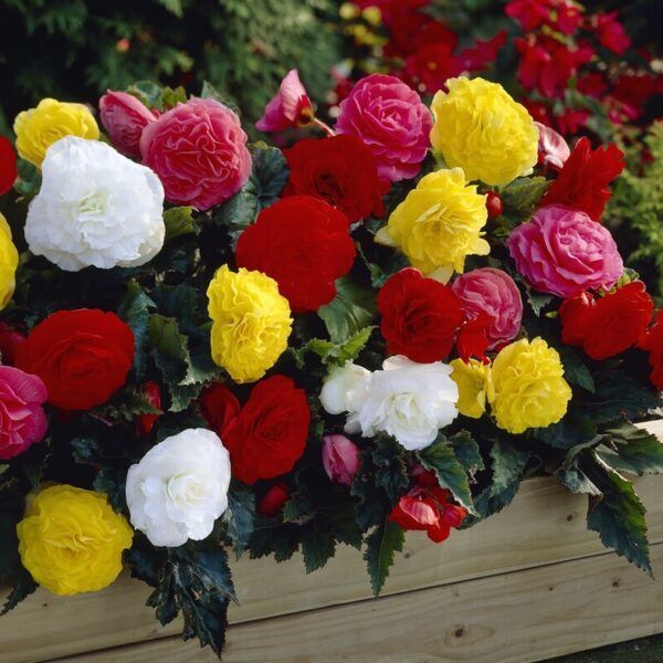 Doble Begonia Mikspakke med ti knoller gir en overflod av fargerike, doble blomster som skaper volum og tekstur i hagen. Perfekt for potter, krukker eller kantbed, disse begoniane gir kontinuerlig blomstring hele sesongen.