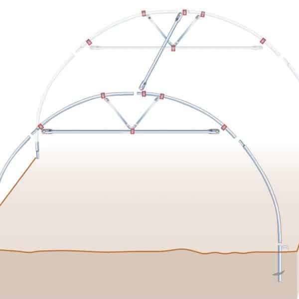 For å sikre at din polytunnel tåler vær og vind er den forsterket med vindbånd i hver ende.