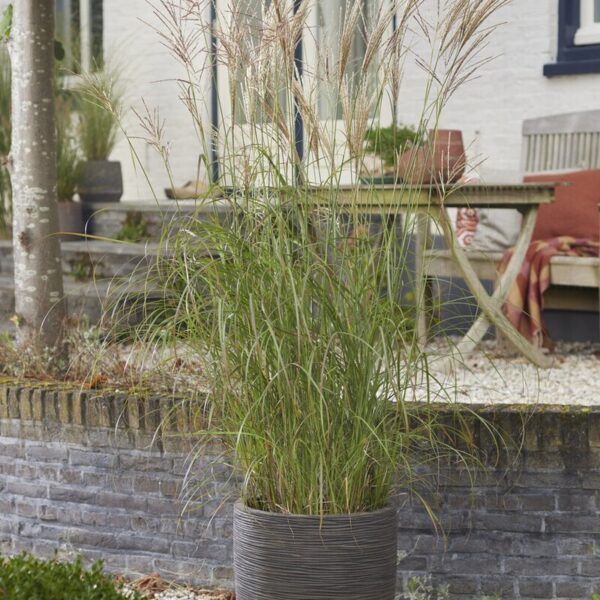 Velprøvd, middels høyt miscanthus med tidlig fargespill i nordisk klima. Danner jevne, fonteneformede tuer og leverer rødlige, senere sølvaktige aks som løfter beplantningen fra sensommer til sen vinter.