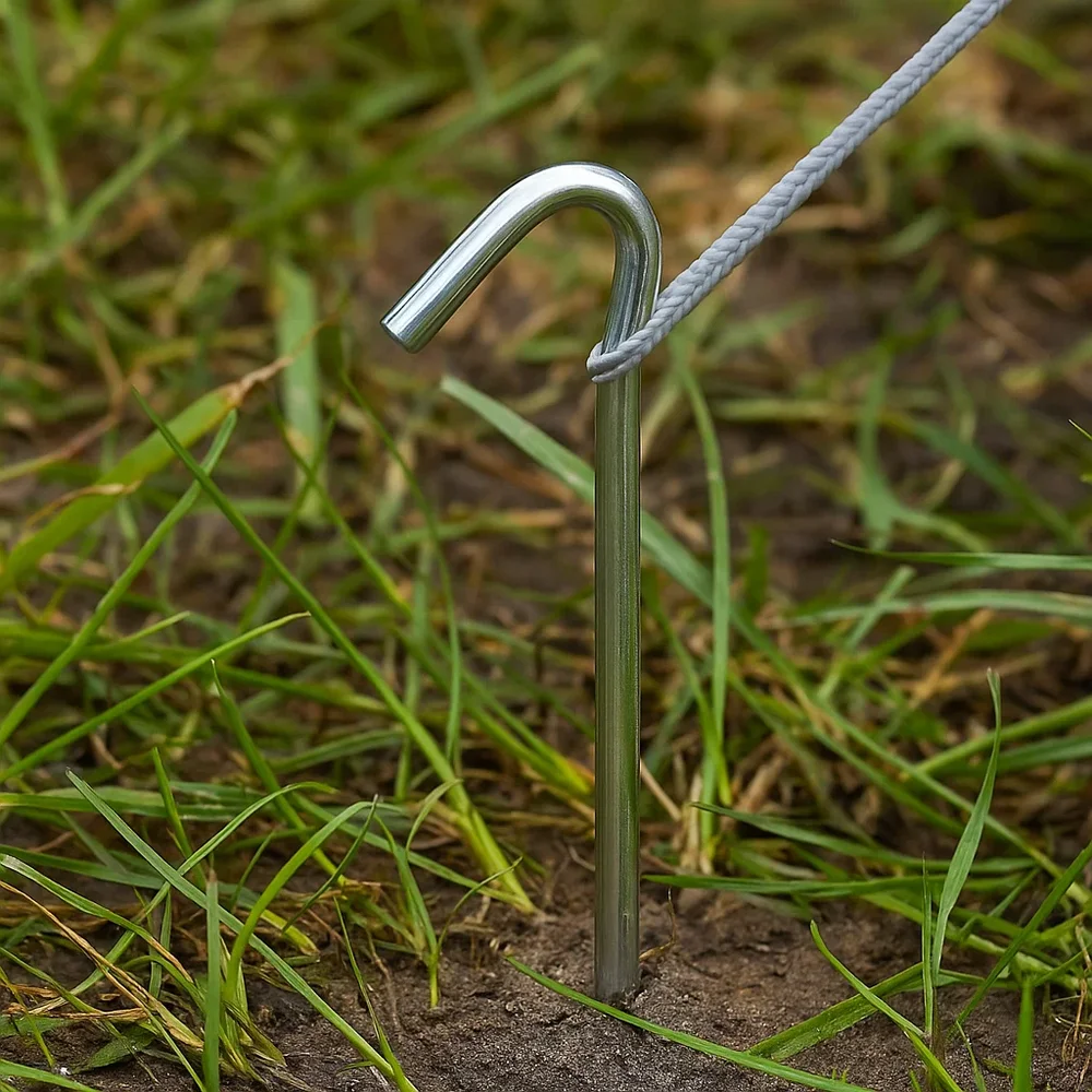 Robuste, galvaniserte festeplugger (23 cm) i pakke på 10 stk. Perfekt til sikker forankring av telt, presenninger, duker og hageutstyr. Holdbare og værbestandige.
