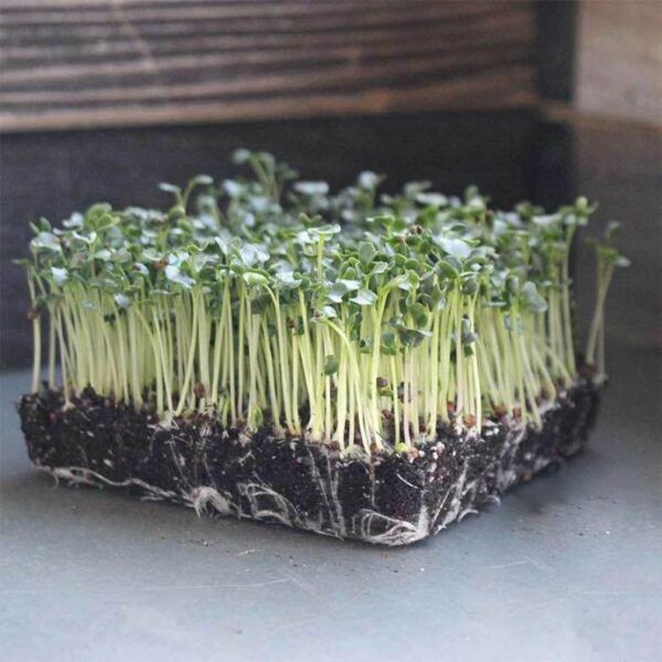 12 vekstdager. Mikrogrønt som er full av smak og næringsstoffer. Den skiller ut et aroma som ligner andre brassica som sennep.
