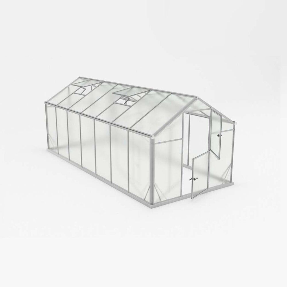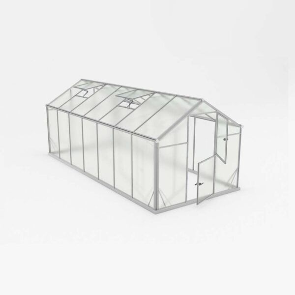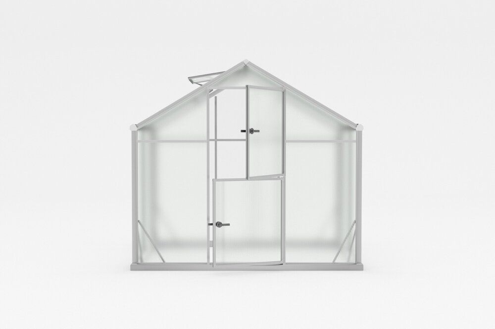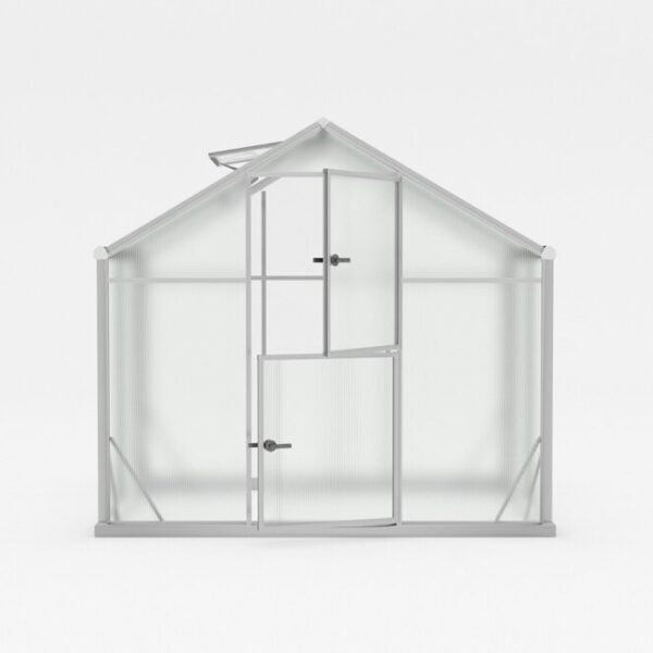 Drivhuset leveres med vegg- og takplater i 6 mm polykarbonat. Dette gir et drivhus som er optimalt for dyrking av planter. Drivhuset har inkludert takvindu med automatisk vindusåpner, sokkel og todelt dør.