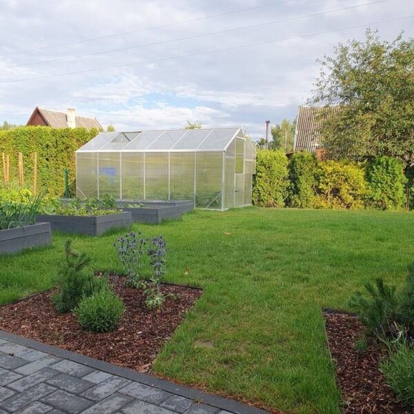 – 6 mm polykarbonatplater i tak og vegger sørger for god beskyttelse mot sterk sol, god isolasjon og jevnere temperatur i drivhuset.