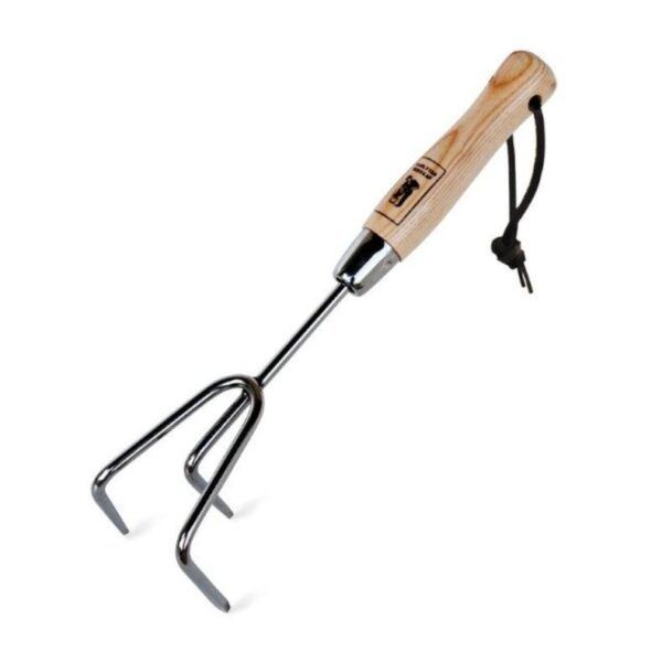 Solid kultivator med trehåndtak. Blad i rustfritt stål