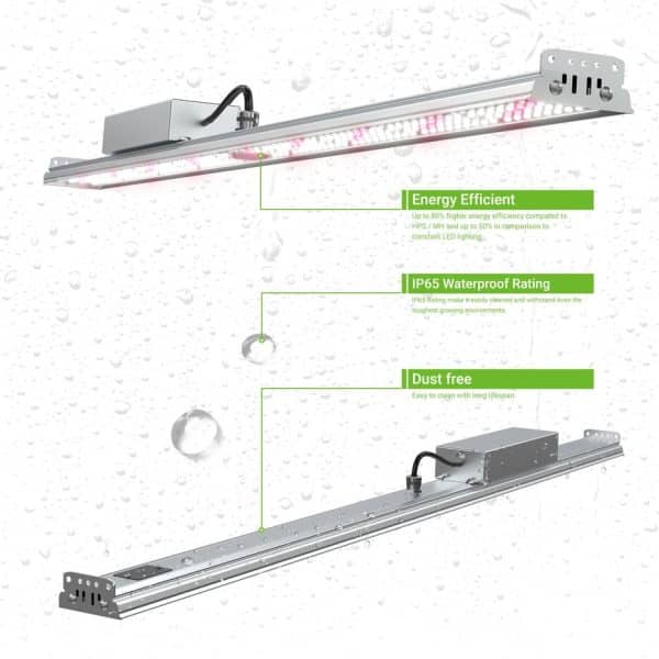 Horti-Sky 150W er et kraftig fullspektrum LED-vekstlys med høy effektivitet på 2.46 μmol/J og et PPF-nivå på 369 μmol/s. Lampen gir jevn og stabil lysfordeling for hyller, dyrketelt og drivhus, og er IP65-klassifisert for trygg bruk i fuktige miljøer. Ideell for både hobbydyrkere og mer avanserte oppsett. Kommer med justerbart oppheng.