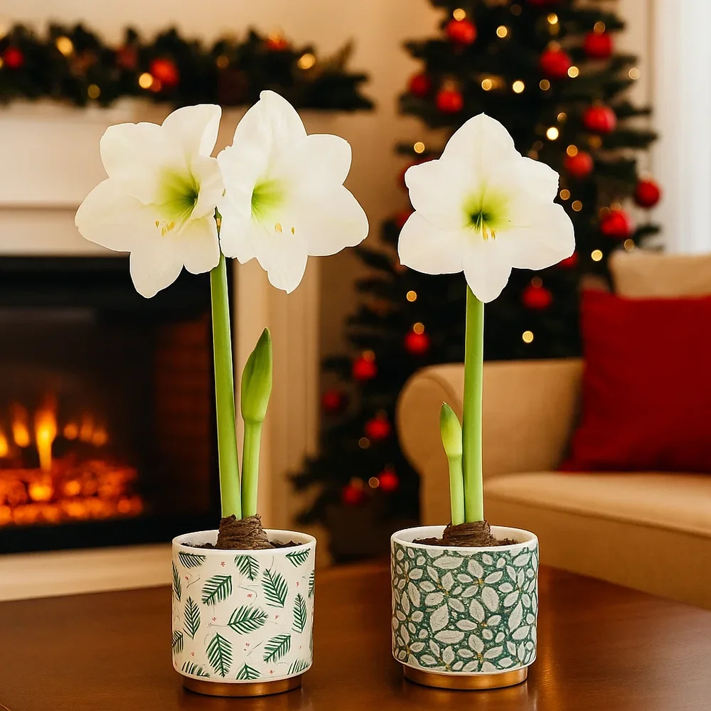 Hvite Amaryllis | 2 blomsterløk i dekorative potter