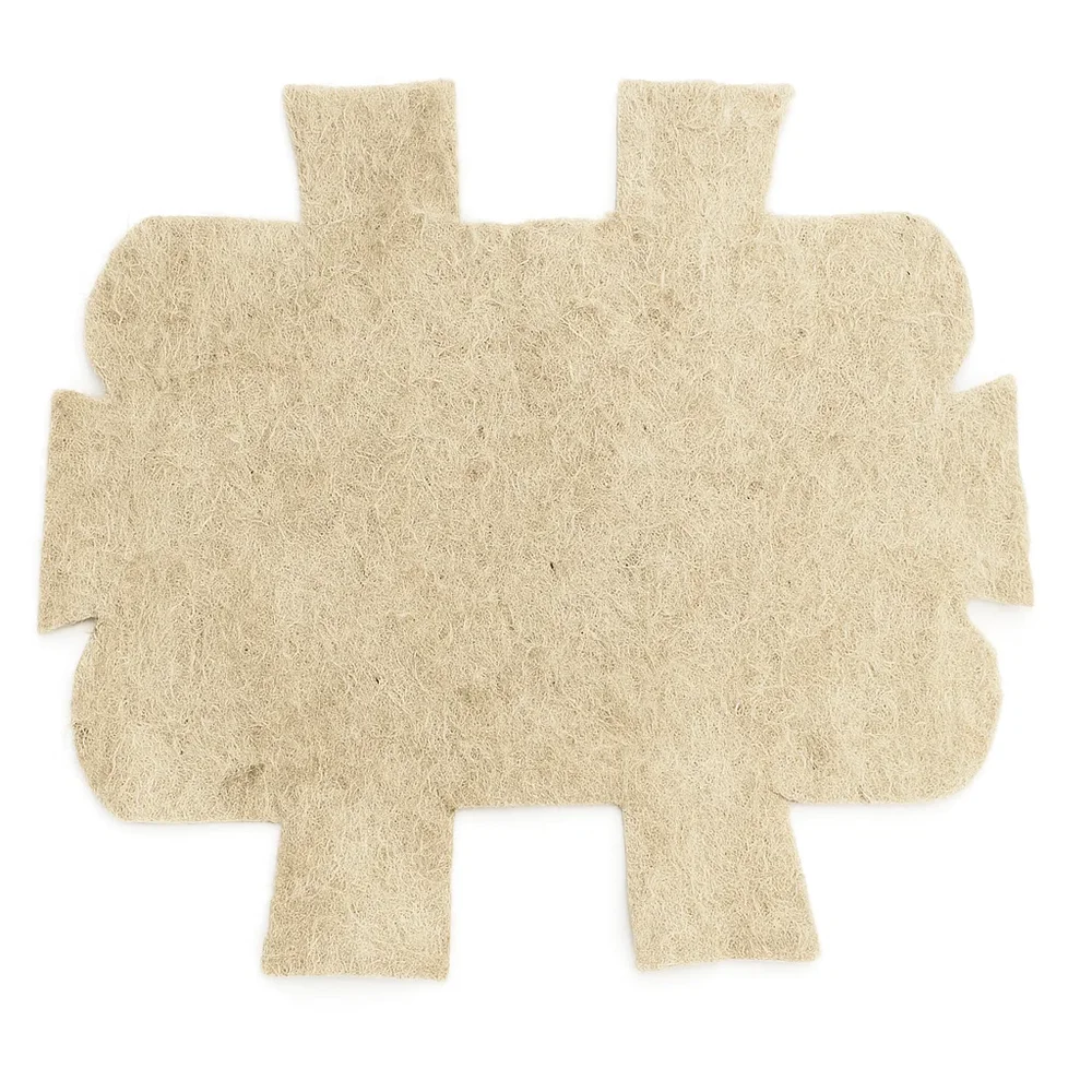 Mattene er laget av mineralfritt jutefiber — slitesterkt, porøst og med god vannretensjon. Jutefarm gir jevn fuktighet til røttene uten å bli vannmettet. De er fullstendig biologisk nedbrytbare og miljøvennlige.