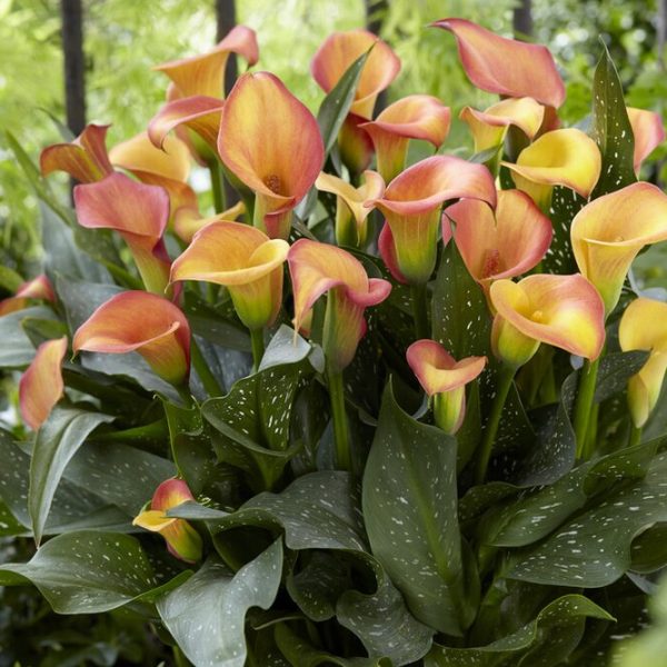 Livlig kala med sterke gule blomster og friskt grønt bladverk. Ca. 50–70 cm høy og blomstrer fra juli til september. Trives i sol og lett fuktig jord. En sommerfavoritt som sprer glede og farge.