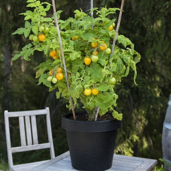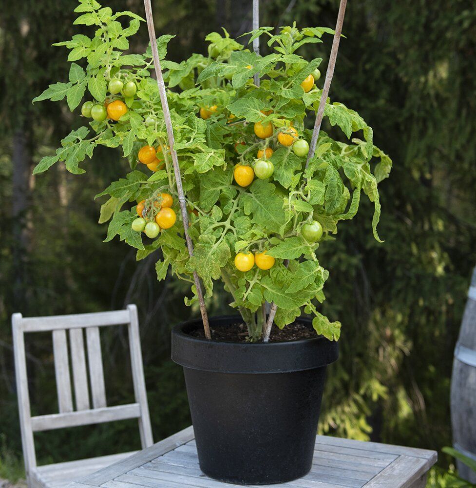 Forkultiveres innendørs i potter i feb.–apr. Fyll pottene med 2/3 plantejord og 1/3 såjord øverst. Sett pottene i 22–25 °C, etter spiring 18–20 °C og så lyst som mulig. Plantes ut etter herding i drivhus eller varme frilandsforhold når faren for frost er over. Busktomat. Støttes opp ved behov. Sideskudd trengs ikke å fjernes.