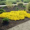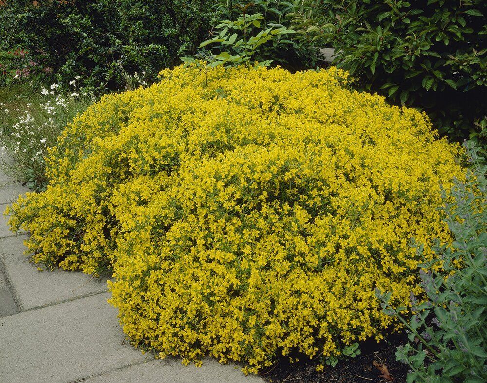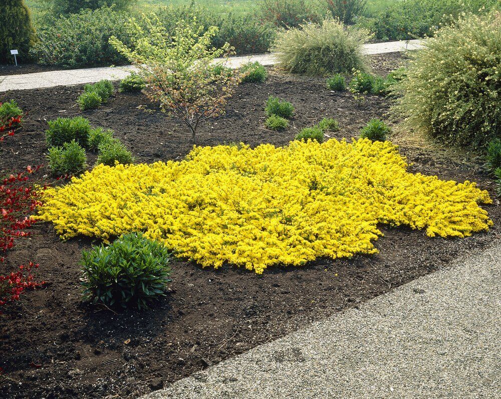 Krypgyvel blomstrer i juni med tett i tett med små, gule blomster. Blomstene dekker de krypende grenene og skaper et imponerende fargeinnslag i hagen.