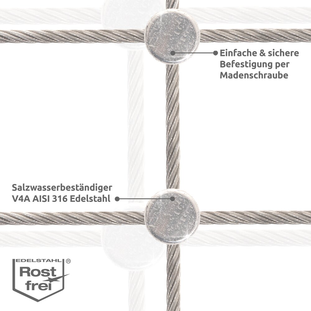 Dette kryss­stykket i syrefast rustfritt stål gir en elegant løsning der to wirer møtes i kryssform, uten å svekke systemets styrke. Det gjør at du kan lage mønsterdesign, rutenett eller andre dekorative konfigurasjoner i klatrestøttesystemet.