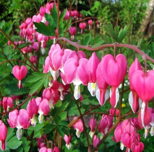 Klassisk hageplante fra Øst-Asia, dyrket i århundrer for sine elegante, hjerteformede blomster som danner kjeder langs buede stilker. Danner frodige tuer med frisk, fliket bladmasse som gir ro i skyggebedet.