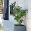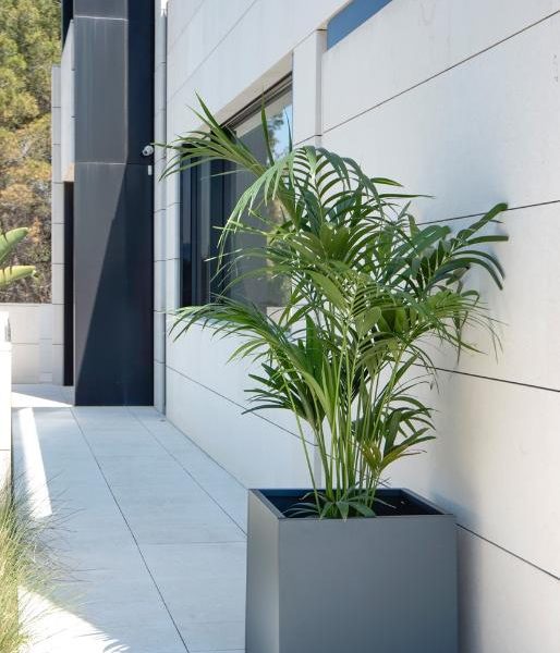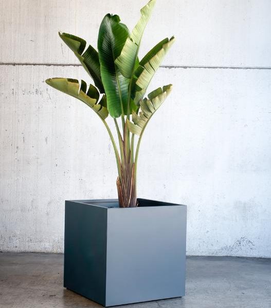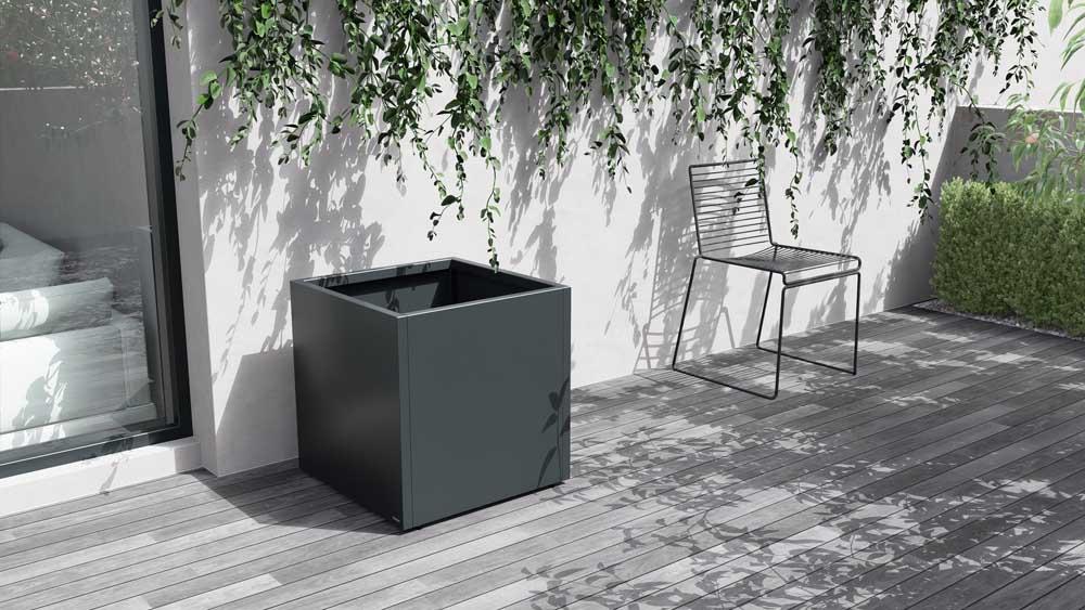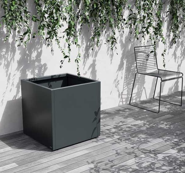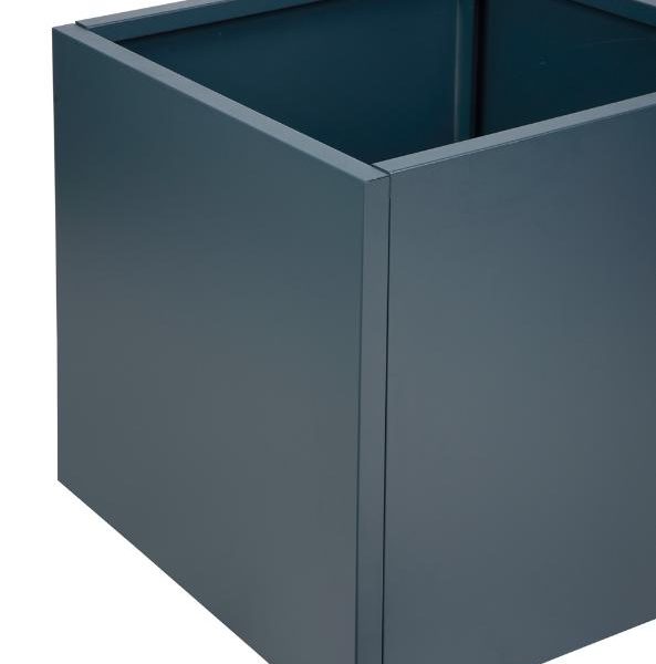 Denne plantekassen i stål kombinerer funksjonalitet og estetikk med sin kubeform på 70x70x70 cm. Størrelsen gir god plass til større planter, trær eller komplekse blomsteroppsatser, og den fungerer både som et blikkfang og et praktisk element i uterommet.