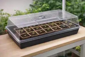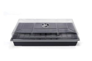Praktisk dyrkebrett + gjennomsiktig lokk med justerbare luftespalter for optimal kontroll av fuktighet og temperatur. Sammen utgjør de et ideelt minidrivhus for spirer og småplanter, noe som gir perfekte vekstforhold fra start. Dyrkebrettet er robust og gjenbrukbart, mens det ventilasjonsjusterbare lokket gir planter tilgang til frisk luft når de trenger det. Perfekt for både nybegynnere og erfarne dyrkere som ønsker enkel kontroll over spiringsprosessen.