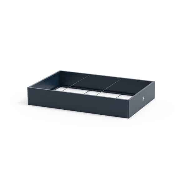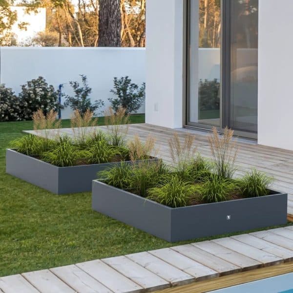 Dette opphøyde bedet er laget av galvanisert stål, kjent for sin holdbarhet og motstand mot korrosjon. Den antrasittgrå fargen gir et moderne og stilrent uttrykk som passer inn i ulike hagemiljøer.