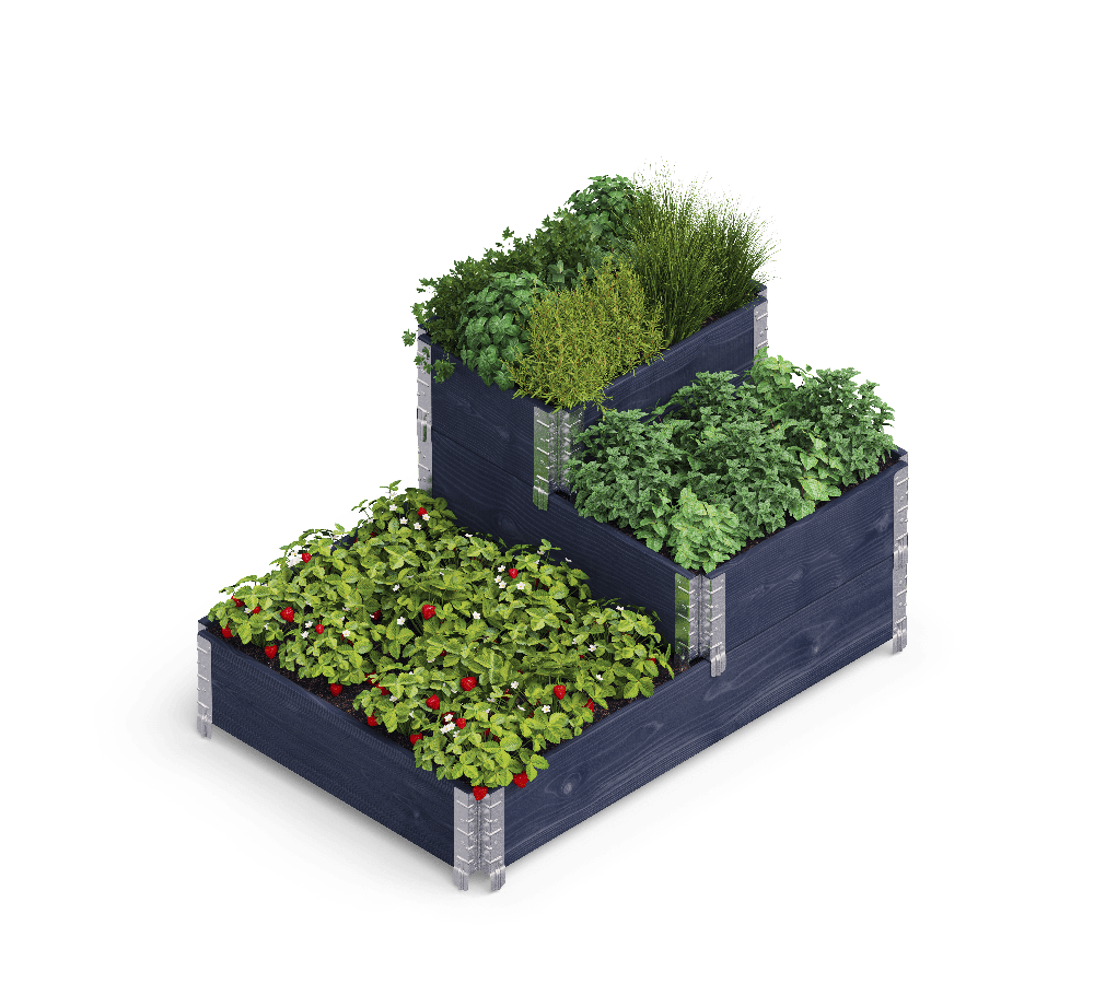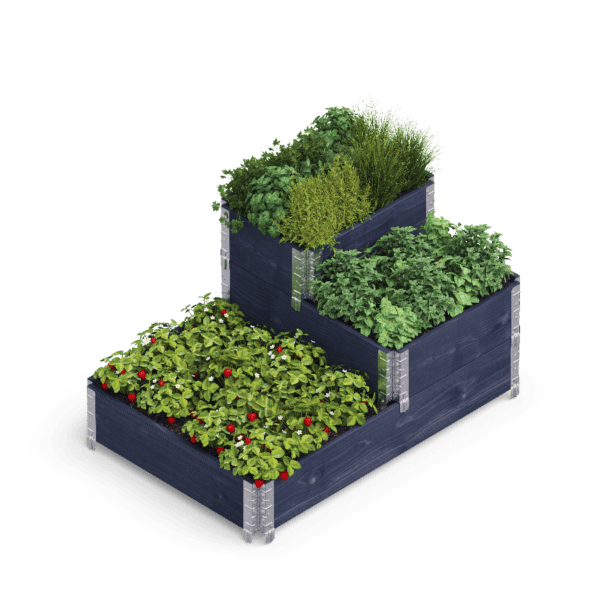 Våre opphøyde bed kommer ferdigbehandlet i værbestandig maling.