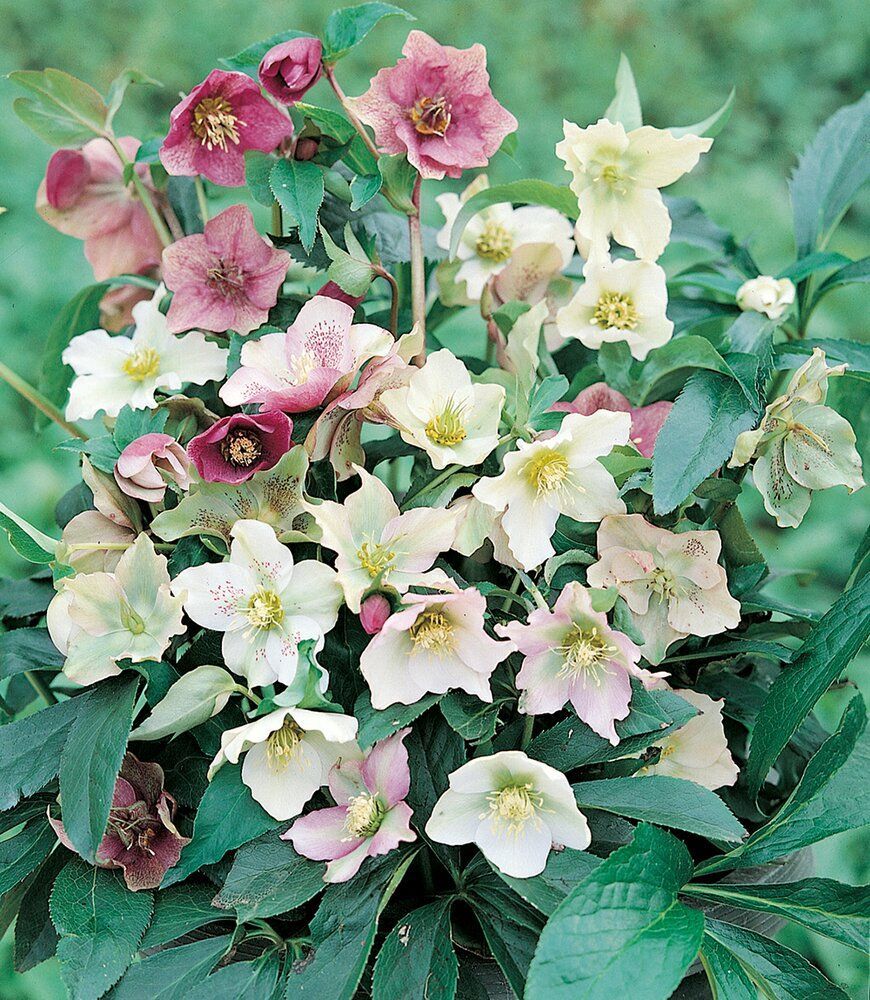 Orientalis-hybrid. Spektakulære, store blomster i røde, rosa, grønne og gulhvite farger, noen med mørkere prikker. Vintergrønne, tannete blader. Også velegnet til stenpartier. OBS! Planten er giftig.