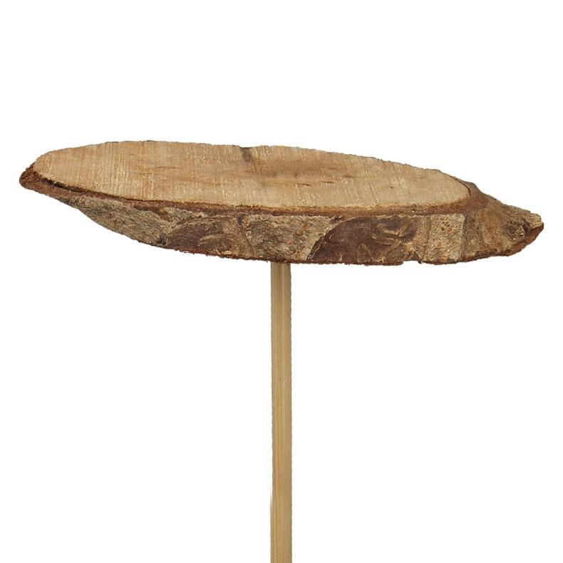Dekorativt trestykke festet på en pinne for nedsetting i jord.
