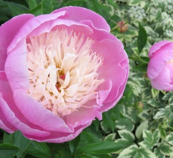 Elegant peon med store, halvfylte blomster i rosa og kremgult. Ca. 80–100 cm høy og blomstrer i juni–juli. Trives i sol og næringsrik jord. En klassisk sort som gir luksus og farge til sommerhagen.