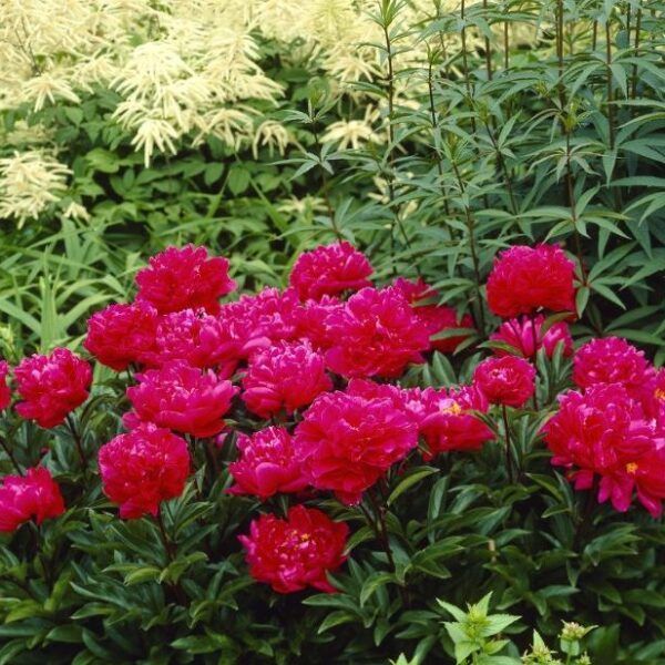 Briljerer med dype, røde, fylte blomster som skaper en slående kontrast i hagen. Lang blomstringstid og solid vekst gjør den til et pålitelig valg. Denne peonen passer til både solfylte og delvis skyggelagte steder, og er flott i buketter. En favoritt blant hageeiere for sine dramatiske fargetoner.