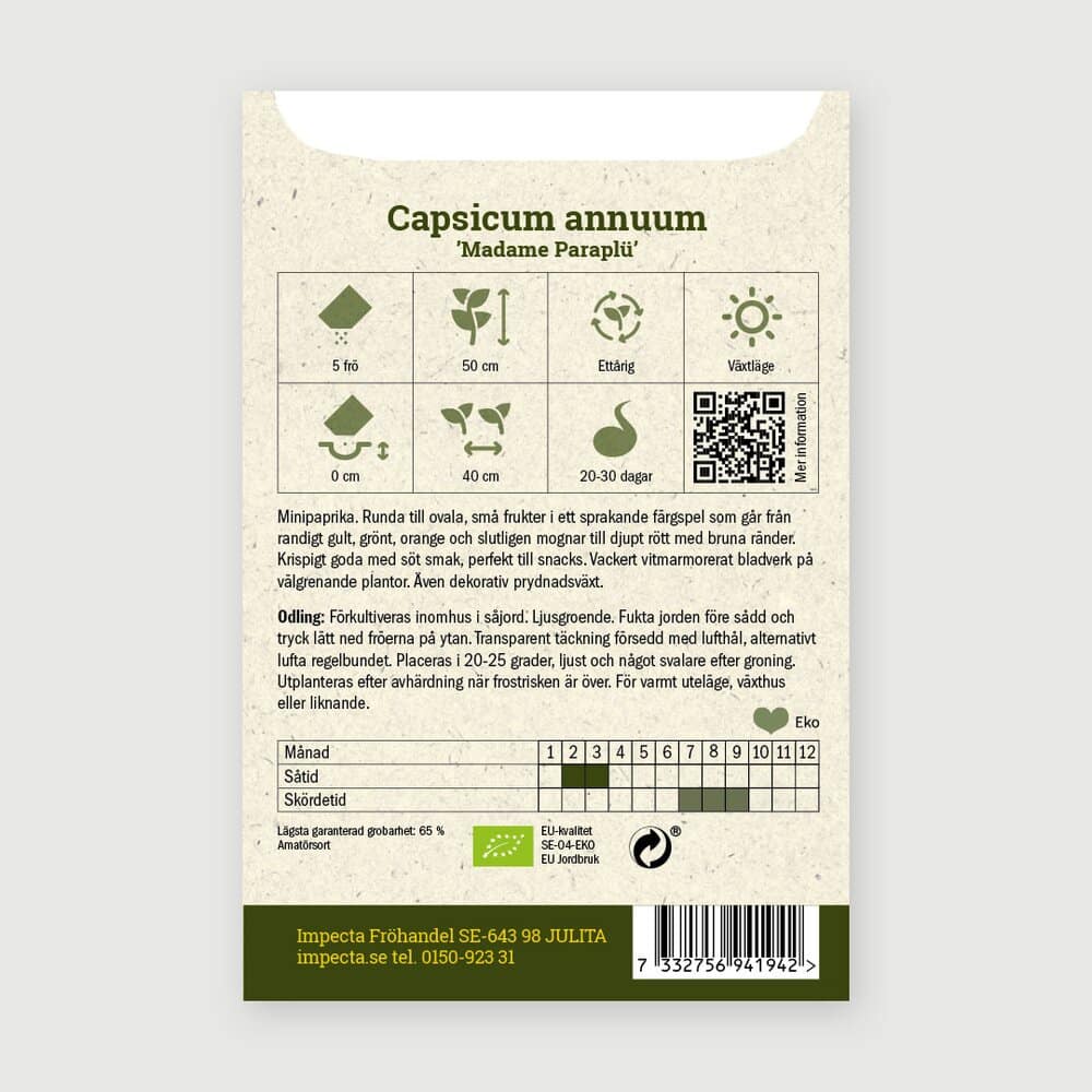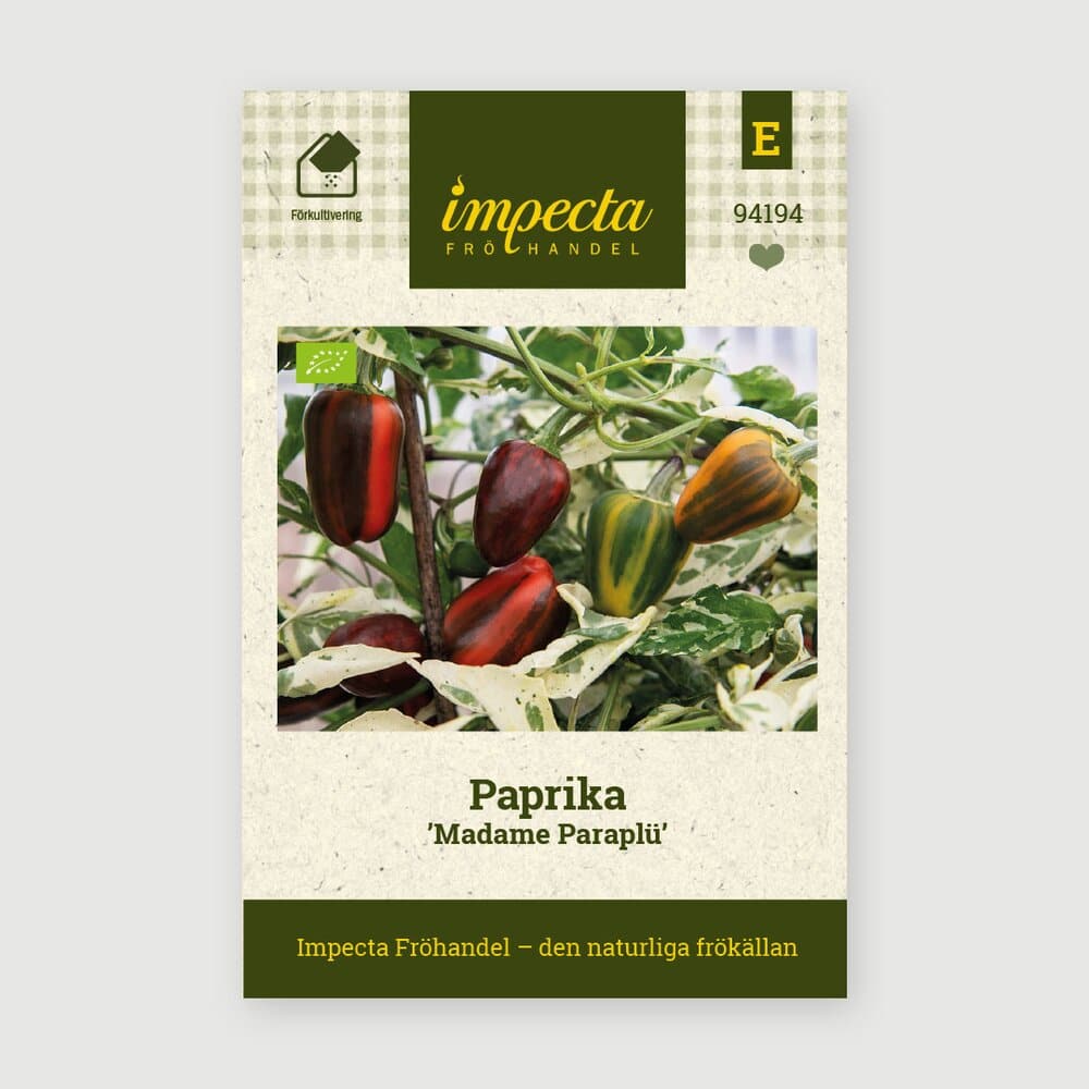 | Latinsk navn (Art + Sort) | Capsicum annuum 'Madame Paraplü' |