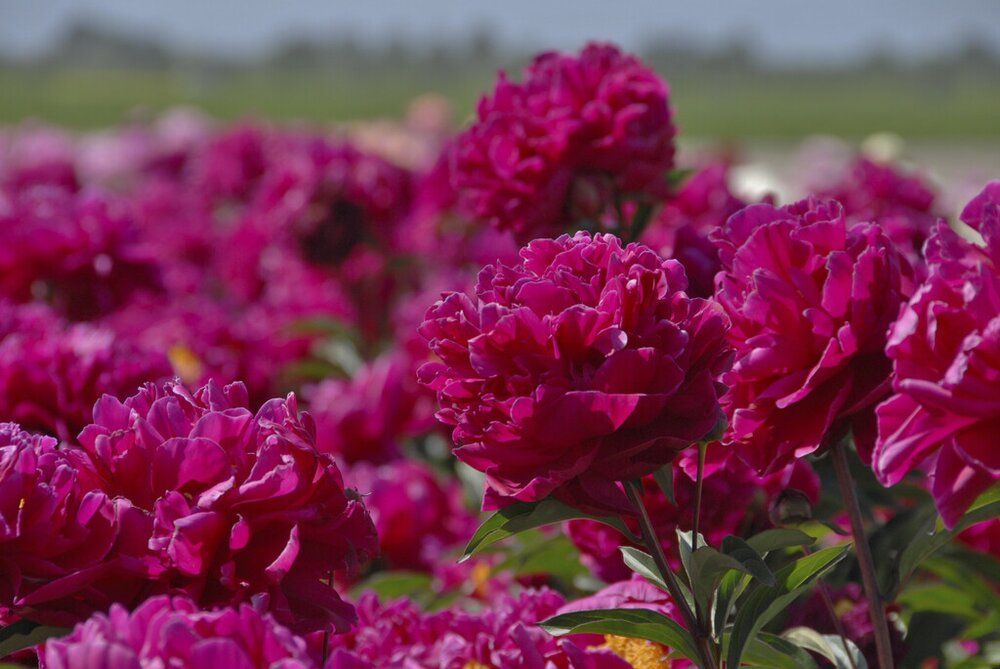 Plant grunt – øynene/krona skal ligge 3–5 cm under jordoverflaten. For dypt plantet pion blomstrer lite. Avstand 80–100 cm. Løsne jorden dypt; bland inn kompost og litt treaske/steinmel for kalium. I store krukker: 40–60 l, dyp potte og perfekt drenering.