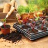 Plantebrett med 18x9cm runde potter på en stødig base, perfekt for å så frø eller stiklinger for større planter. Kvalitetspotter som brukes av profesjonelle. Laget av 100% resirkulert plast.