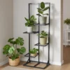 Praktisk og stilren plantehylle i sortlakkert metall med 4 hyller. Perfekt for å vise frem planter og dekor. Enkel å montere, passer både ute og inne.