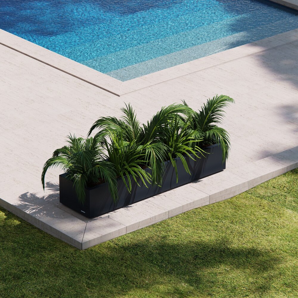 Enten du har en romslig hage eller en stor terrasse, passer denne plantekassen perfekt. Den kan brukes alene som et blikkfang eller kombineres med andre kasser for å skape et dynamisk og interessant uterom.