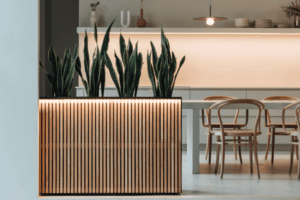 Gi hagen eller terrassen et naturlig og sofistikert preg med en elegant og funksjonell plantekasse i tre som også fungerer som en romdeler. Med mål på 120x40x80 cm gir den rikelig plass til dine favorittplanter, samtidig som den skaper en estetisk avgrensning i uterommet eller innendørs. Laget av holdbart treverk som tåler vær og vind, kombinerer den praktisk funksjonalitet med tidløst design.